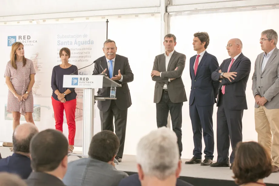 El presidente de Red Eléctrica, José Folgado, durante la inauguración de la subestación de Santa Águeda, en Gran Canaria.