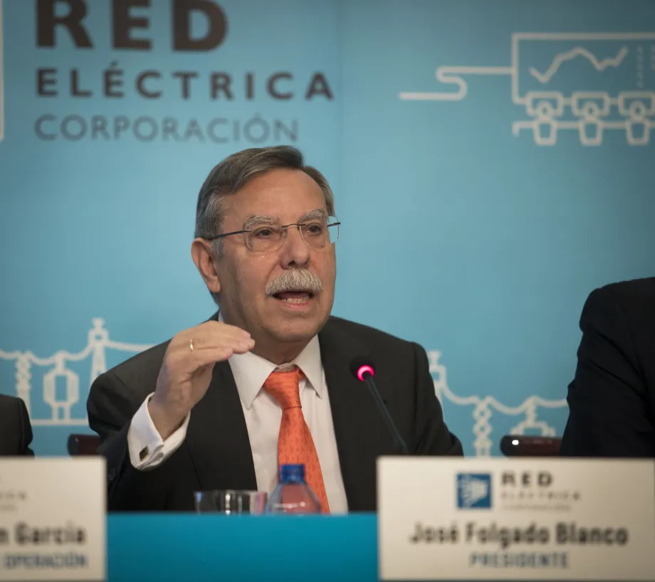 El presidente de Red Eléctrica, José Folgado, en un momento de la rueda de prensa.