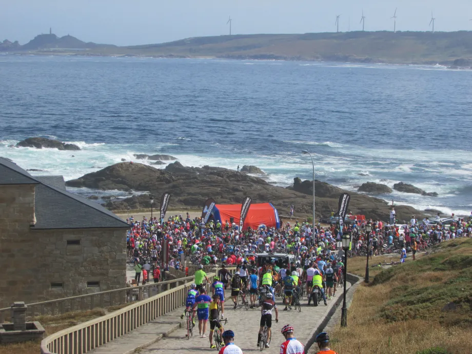 Un millar de aficionados a la bicicleta, entre ellos ex ciclistas profesionales como Miguel Indurain, Claudio Chiappucci y Álvaro Pino han participado en el ‘Gran Fondo de Ézaro’, espectacular prueba en la que los corredores deben ascender rampas de más de 25 % de desnivel para llegar al mirador de Ézaro por una pista de hormigón, lo que hace aún más dura la escalada y que muchos participantes deban echar pie a tierra para poder llegar a la cima.