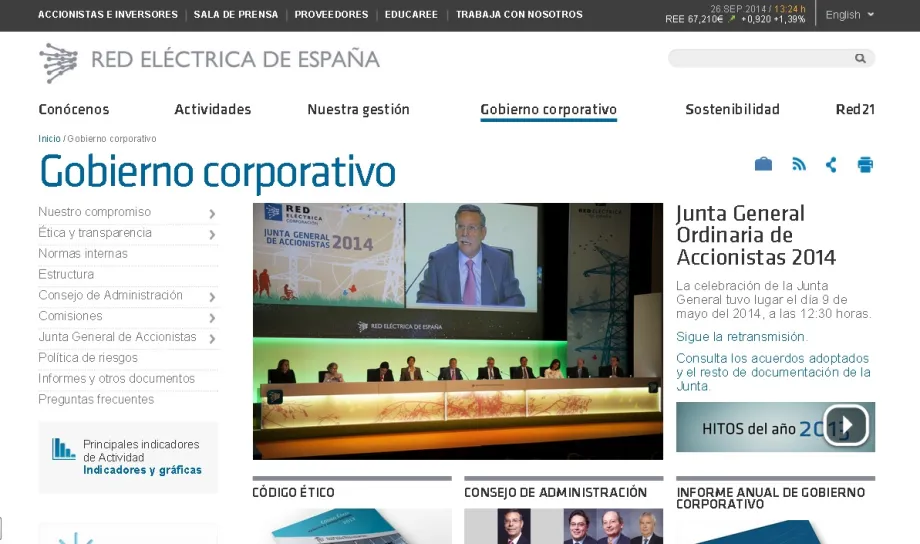Fotonoticia 26/09/2014 La sección de ‘Gobierno corporativo’ de la web de Red Eléctrica, de las cinco mejores prácticas de las empresas del IBEX 35