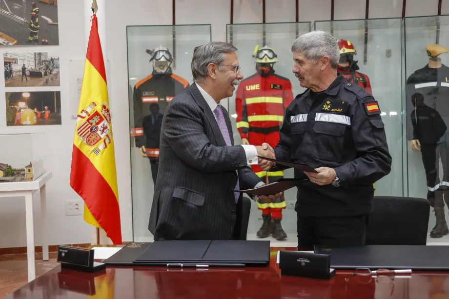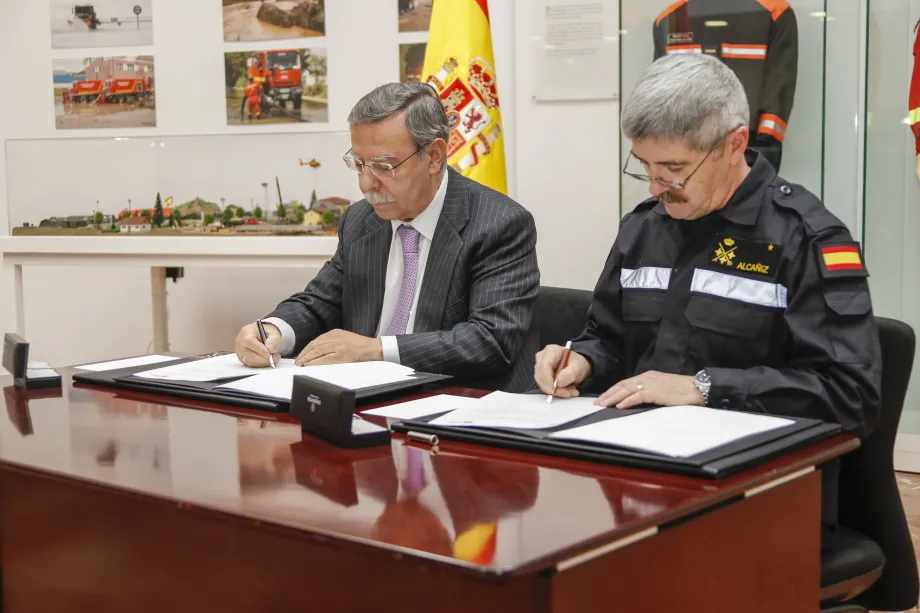 El presidente de Red Eléctrica, José Folgado Blanco, y el jefe de la Unidad Militar de Emergencias (UME), el teniente general Miguel Alcañiz Comas, han firmado hoy un convenio para colaborar y coordinar las acciones que resulten necesarias para garantizar el suministro eléctrico en los casos en que este se vea afectado por un desastre natural o por la consecución de actos ilícitos.