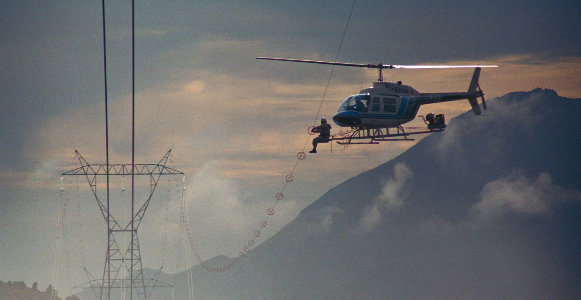 Señalización de líneas con espirales salvapájaros desde un helicóptero